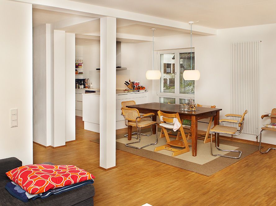 Das Einfamilienhaus von 1957 wird für die veränderten Raumbedürfnisse des neuen Besitzers umgebaut. Eine Teilaufstockung des Daches schafft die benötigte Raumerweiterung. Details aus den 50er Jahren werden erhalten und restauriert. Mit einer energetischen Sanierung erreicht das Gebäude den Effizienzhaus-Standard KfW 85. Das Bauvorhaben wurde von März bis Oktober 2013 durchgeführt.
