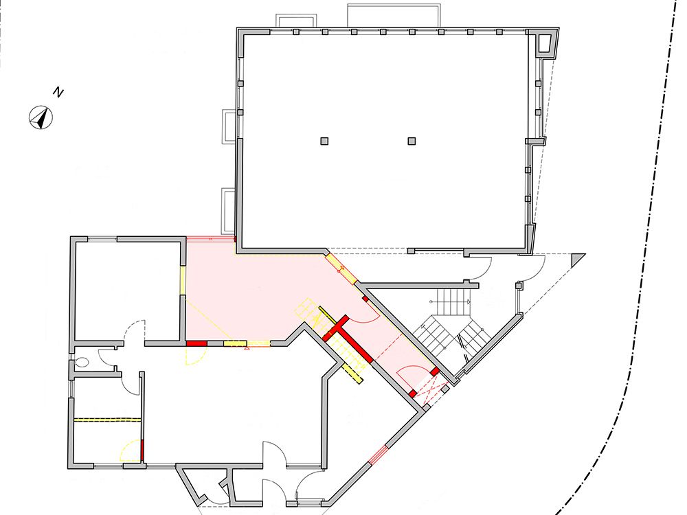 Für eine Büroerweiterung werden das EG eines benachbarten Wohnhauses und der Innenhof zwischen zwei Gebäuden umgebaut bzw. überbaut. Es entsteht eine großzügige Bürofläche von 160 qm. Bauzeit war von Mai 2015 bis November 2015.