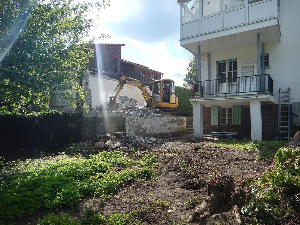 Das Bestandsgebäude aus den 30er Jahren wurde im 2.Weltkrieg stark zerstört und in den 50er Jahren in zwei Bauabschnitten wieder aufgebaut. Das Gebäude wird einer grundsätzlichen Sanierung unterzogen und dabei auch energetisch saniert. Der Umbau dagegen beschränkt sich auf wenige Maßnahmen, welche die Raumaufteilung großzügiger machen und im Dachgeschoss neue Räume schaffen. Die energetische Sanierung erreicht ein KfW-70 Haus. Geplante Bauzeit: Juni 2016 bis November 2016.
