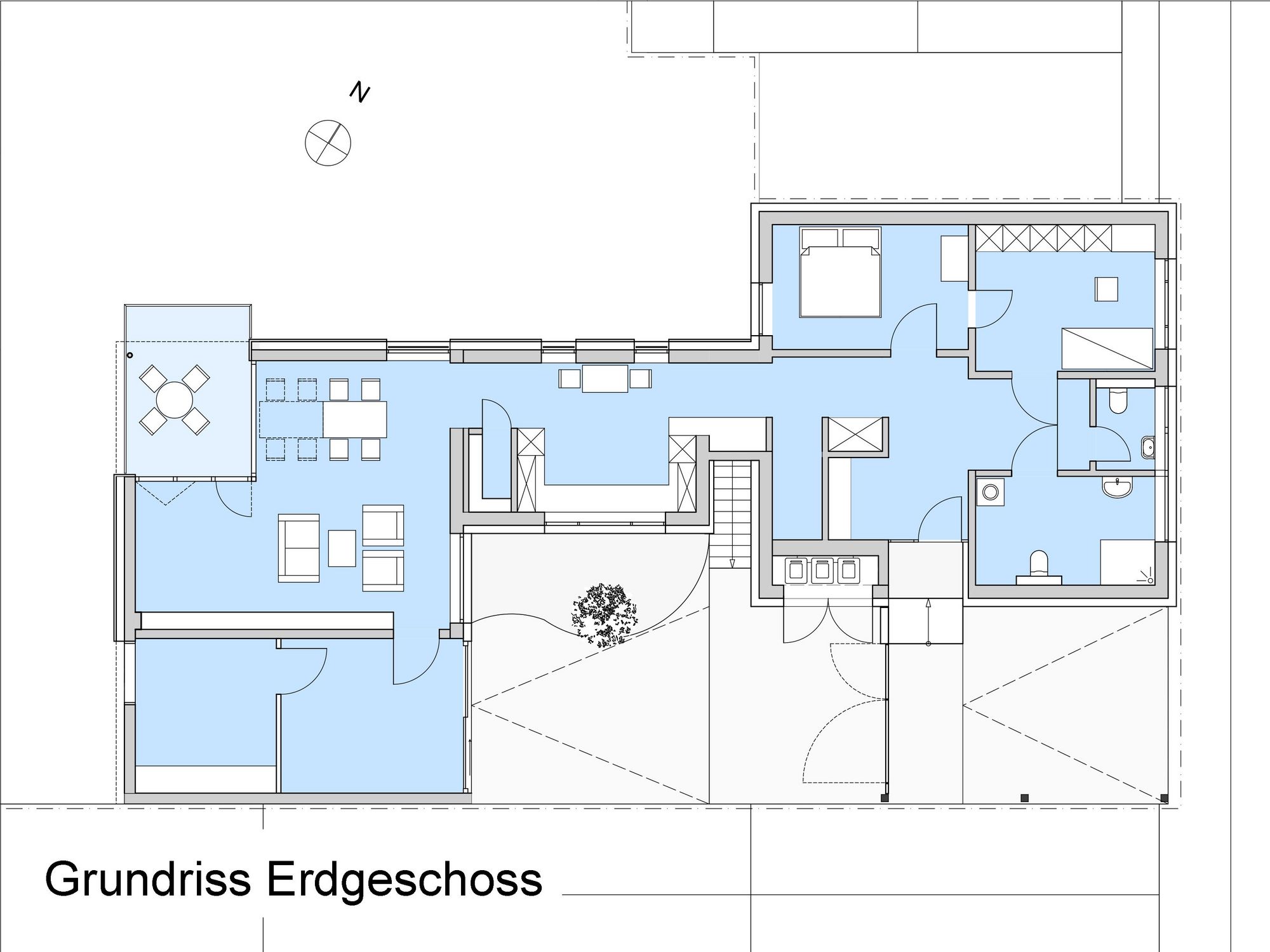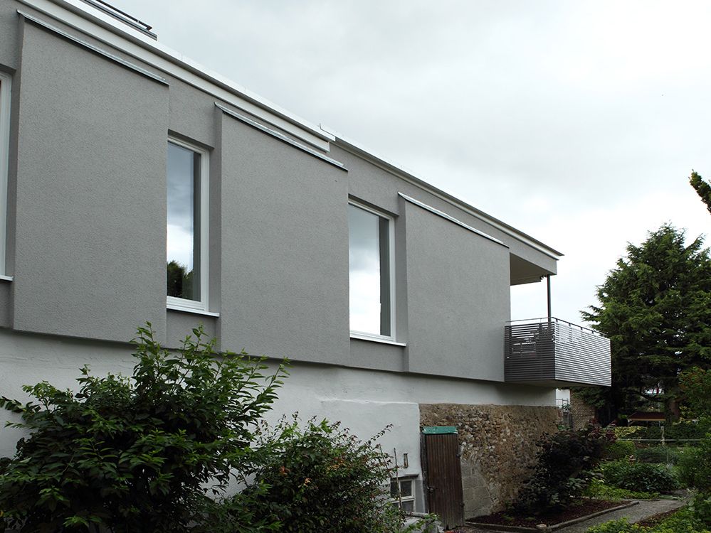 Die Hofreite von 1904 wird zu einem großzügigen Einfamilienhaus umgebaut. Das Haupthaus, in der Rohbaustruktur weitestgehend erhalten, wird durch Nutzungserweiterungen im Zwischenbau und im Erdgeschoss des früheren Scheunenbaus ergänzt. Durch den Abbruch des großen Scheunendaches wird die Belichtung des Ensembles wesentlich verändert. Es entsteht ein Innenhof, der vom Zwischenbau und dem reduzierten Scheunenbau winkelförmig umschlossen wird. Durch die energetische Sanierung entsteht ein KfW 70 Haus. Bauzeit: 09/14 bis 03/15