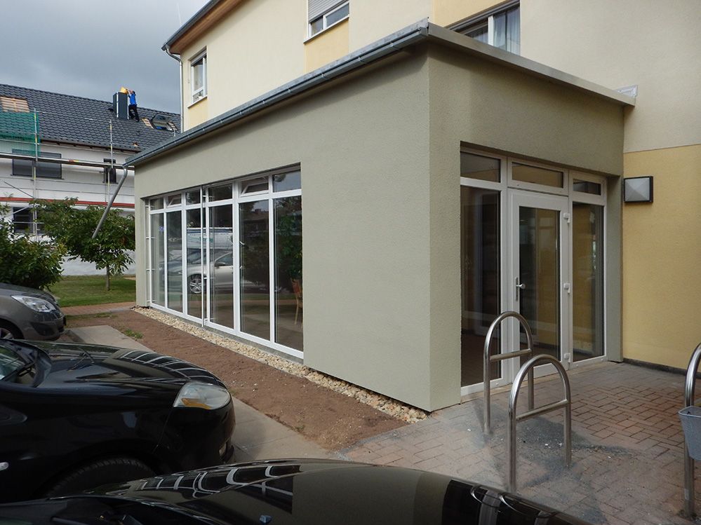 Der Anbau an den Speisesaal wird in der Seniorenanlage multifunktional genutzt und bereichert dadurch den Tagesablauf für die Bewohner. Der Anbau wurde durch eine Stiftung ermöglicht. Bauzeit Juli 2015 bis September 2015.