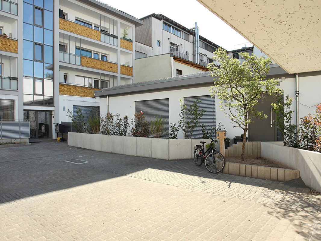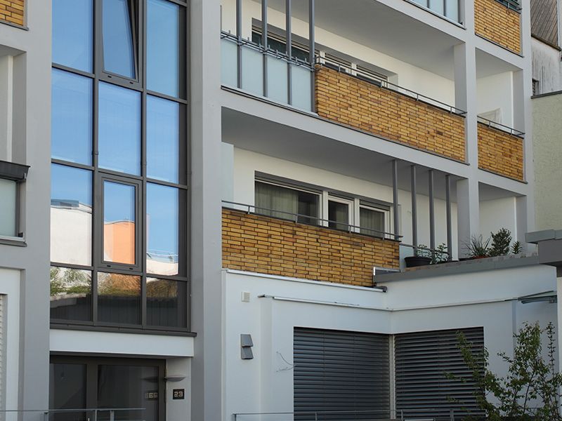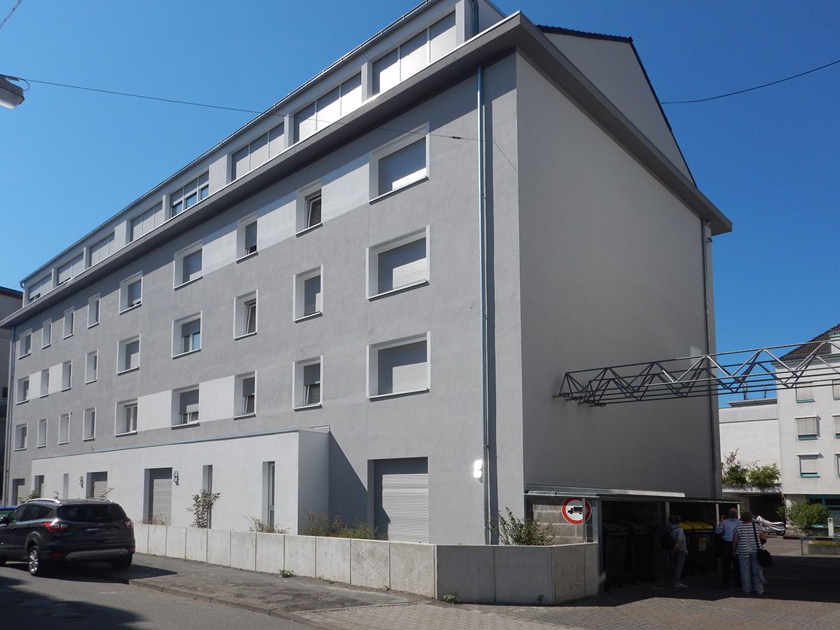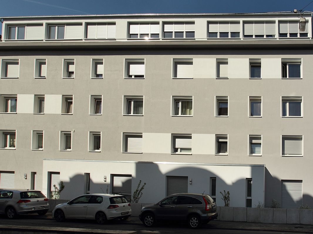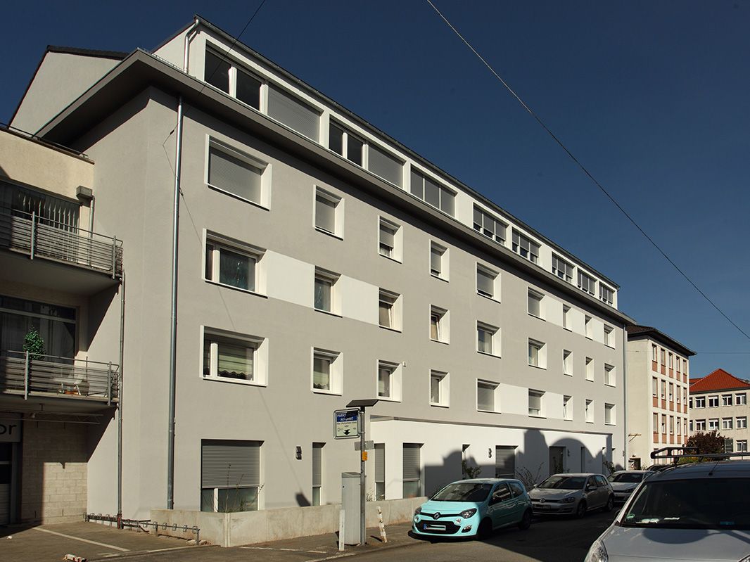 In dem Zwölf-Familien-Haus in Darmstadt werden im Zuge einer energetischen Sanierung elf weitere Wohneinheiten geschaffen. Das Gebäude aus den 50er Jahren besticht durch die gut proportionierte Fassade zum Innenhof hin. Diese Fassade wird so behutsam behandelt, dass das Beton-Gerüst und die Balkon-Brüstungen unverändert den Charakter des 50er Jahre Gebäudes unterstreichen. Zur Straßenseite hin wird ein nachträglich angebrachter Schaufenster-Vorbau als Erweiterungsfläche für die im EG entstehenden Wohneinheiten genutzt. Die neu gestaltete Putz-Fassade zitiert 50er Jahre Elemente mit zeitgemäßer Veränderung. Die Baumaßnahme wird von März bis November 2017 durchgeführt.