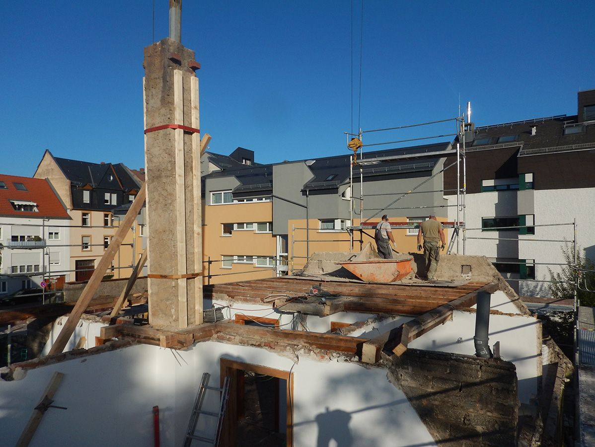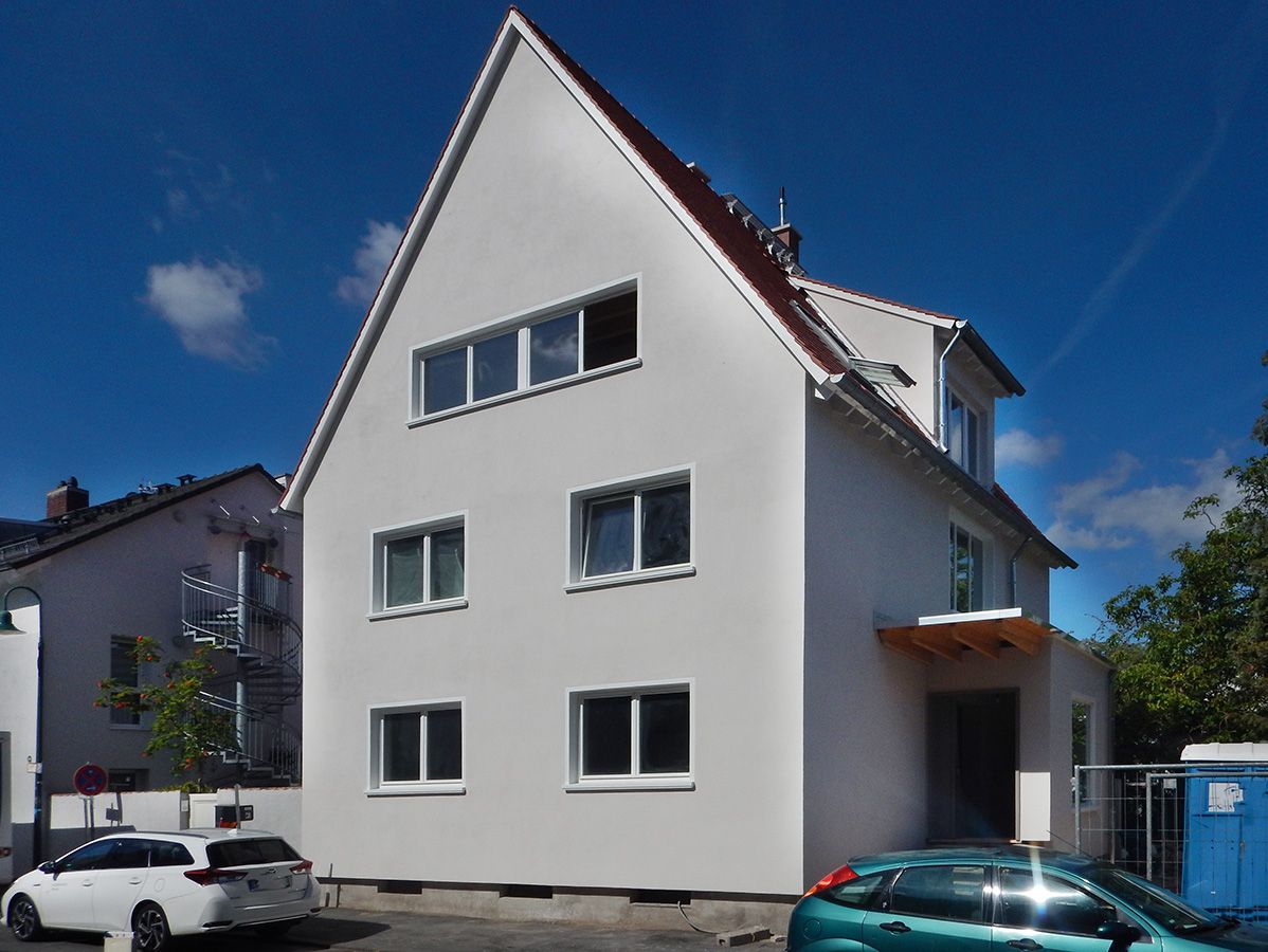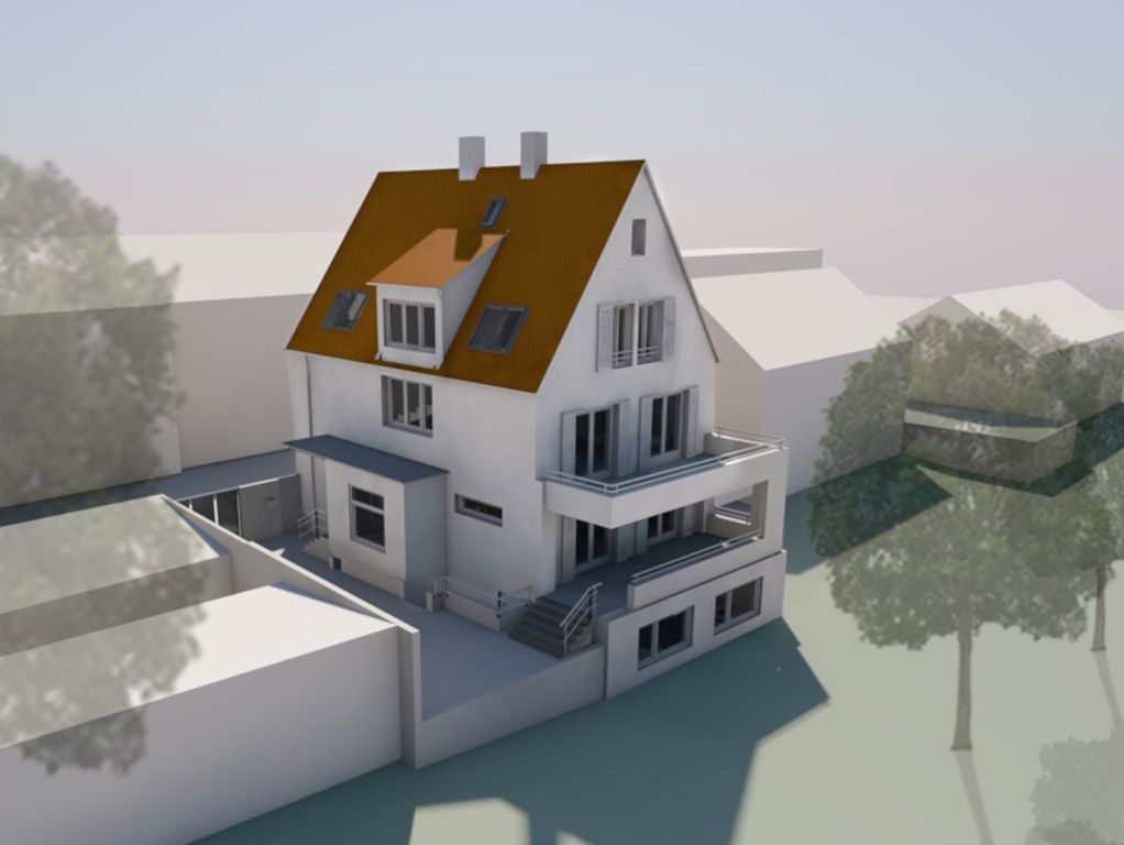 Das Einfamilienhaus von 1960 wird durch eine Aufstockung erweitert. Im Kellergeschoss entsteht eine Einliegerwohnung und an der Westseite wird eine Balkonanlage angebaut. Das Haus erfährt eine grundsätzliche Innenrenovierung. Bei der energetischen Sanierung entsteht ein KfW-70 Effizienzhaus. Die Durchführung ist in der zweiten Hälfte 2019 bis Anfang 2020 geplant.
