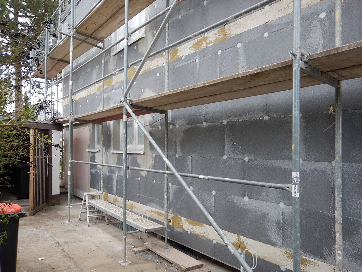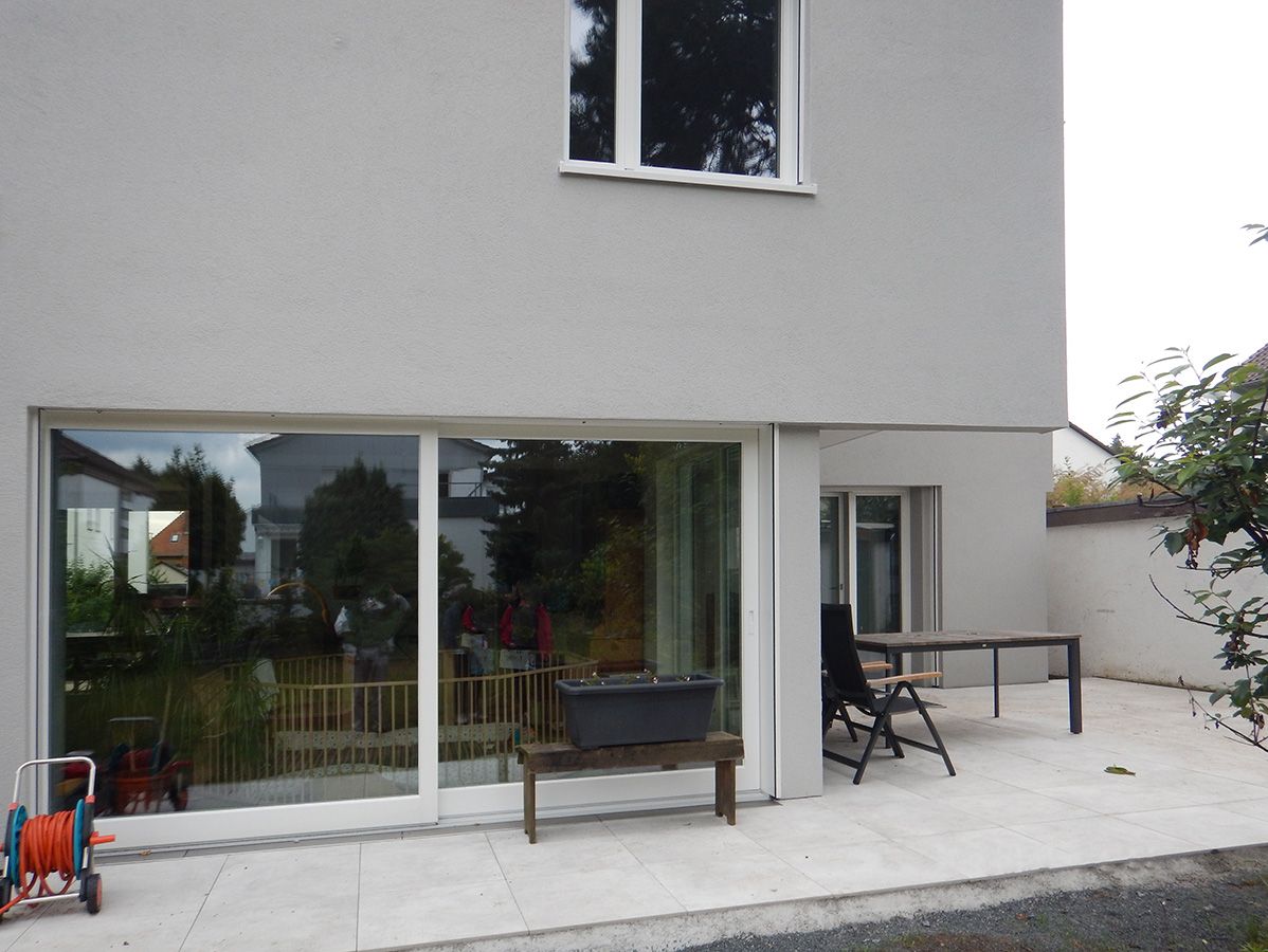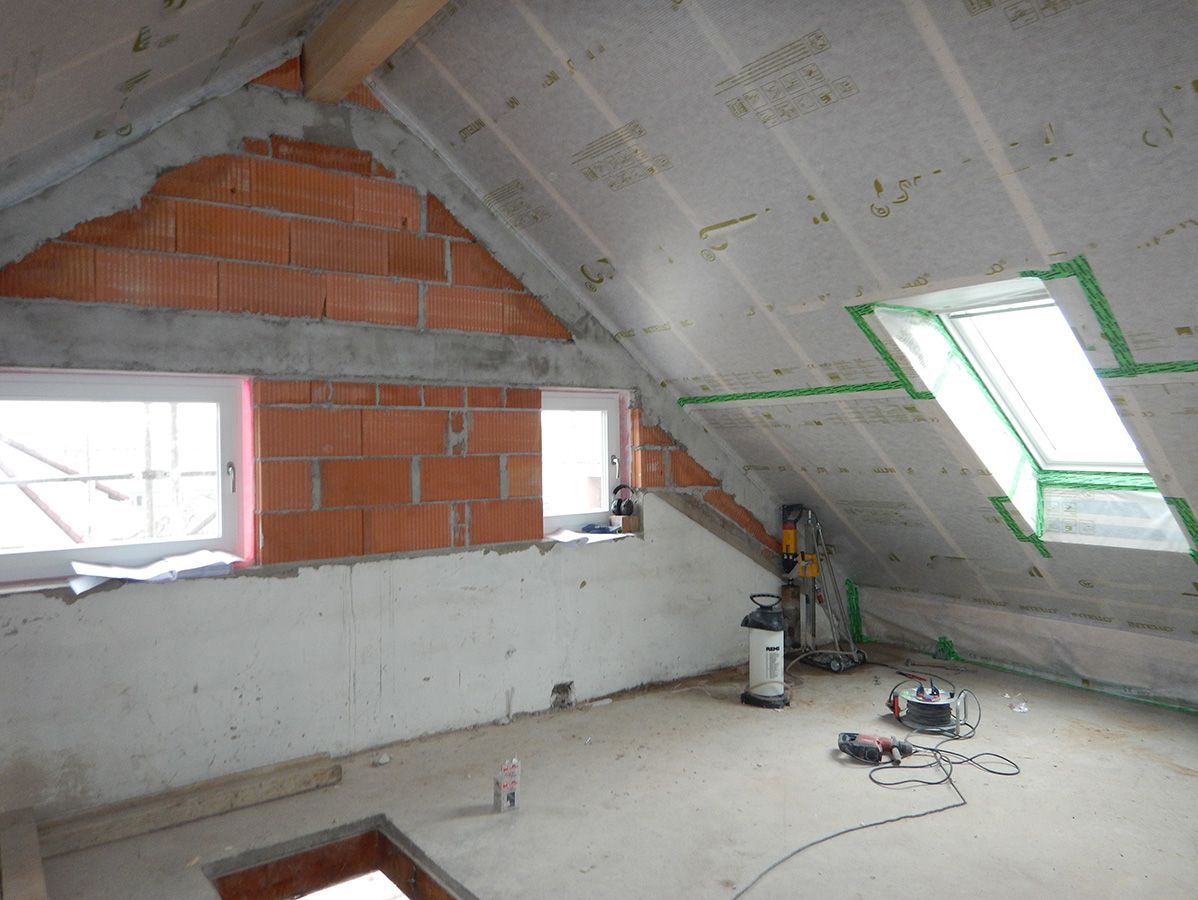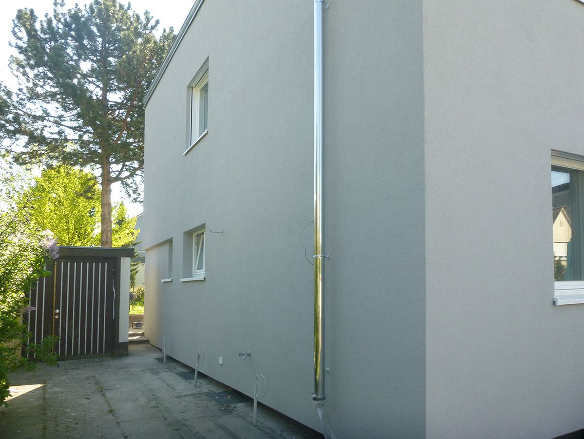 Das Einfamilienhaus von 1960 wurde im neu errichteten Dach mit einer Zwischen-Sparren-Dämmung (ökologische Einblasdämmung) versehen, die Fassade wurde von außen gedämmt. In Verbindung mit einer neuen Pellets-Heizung erreichte das sanierte Haus den Effizienzstandard KfW 70.