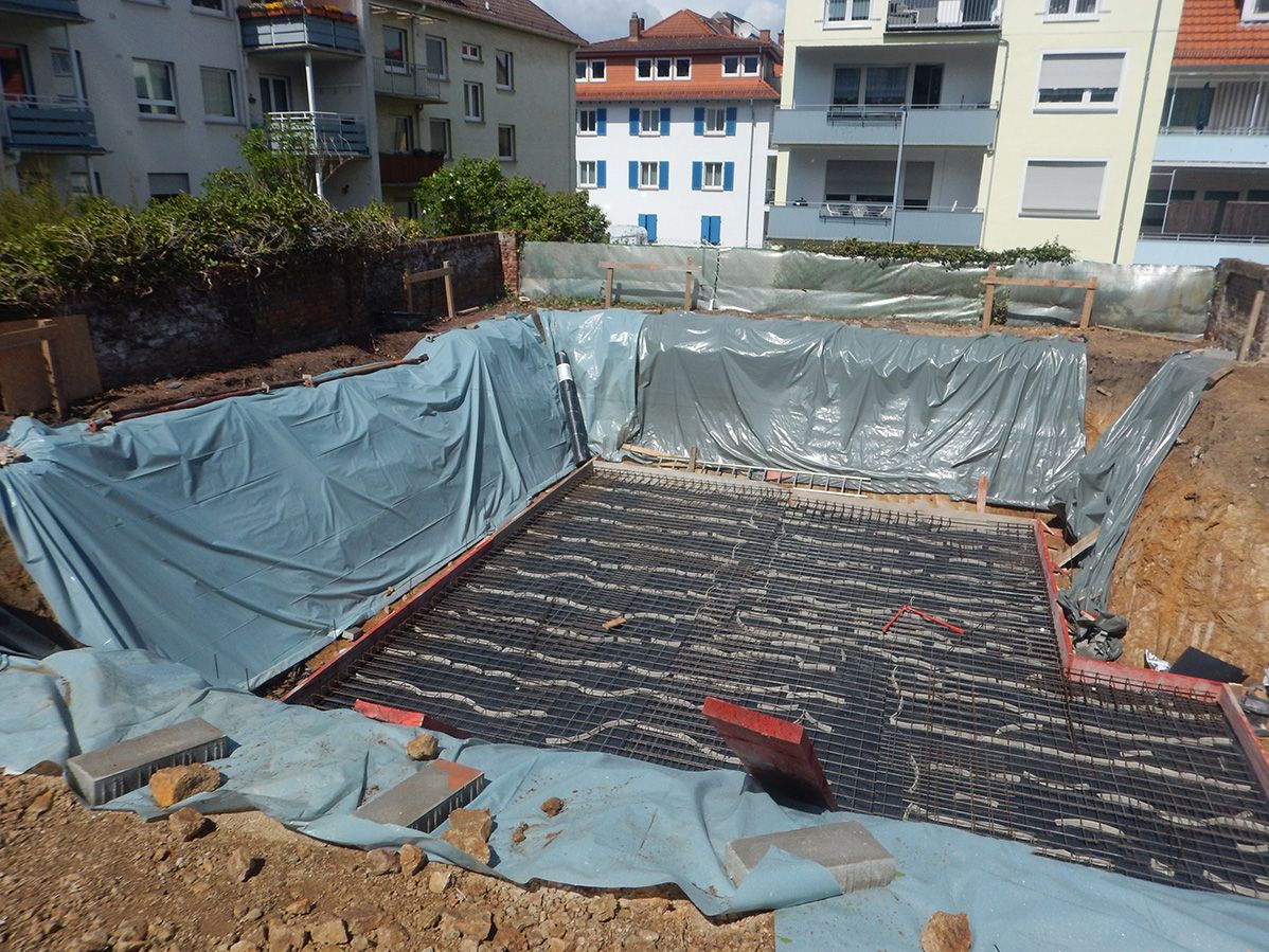 Das Dreifamilienhaus als Verdichtungsbau in einem Wohnviertel wird oberhalb des Kellers komplett in Holzbauweise errichtet. Das Gebäude hat einen ausgesprochen gutes Wohnklima und eine sehr gute Ökobilanz. Die drei verschieden großen Wohneinheiten sind jeweils individuell gestaltet. Das Gebäude fügt sich auf knappem Grundstück gut in die Umgebungsbebauung ein.